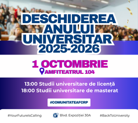 7 iulie 2025, ora 18:00 - prezentare programe de studii ale FCRP
