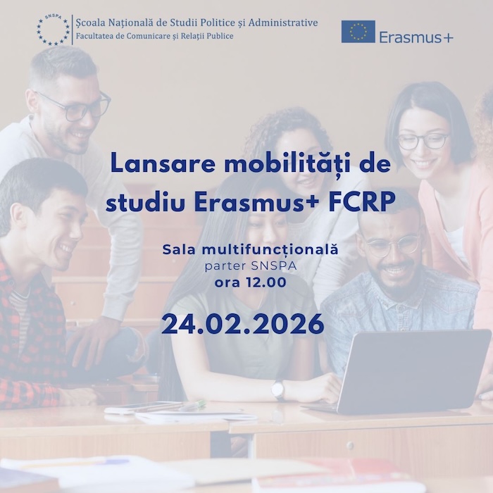 Marți, 24 februarie 2026, începând cu ora 12:00, în sala multifuncțională, va avea loc evenimentul de lansare a selecției pentru mobilitățile de studiu Erasmus+ aferente anului universitar 2026/2027.